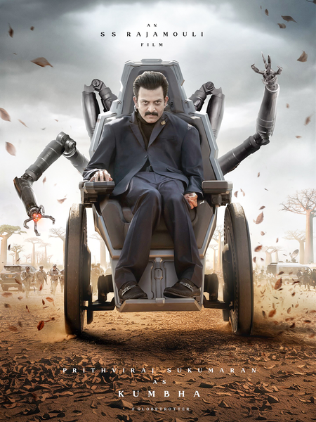 Rajamouli shared the first look of Prithviraj on the 7th of November, who on the poster appeared to be playing the lead antagonist as ‘Kumbha’. In the poster, the actor can be seen wearing a black suit with matching trousers and shoes, and with his four robotic arms seen extending from his wheelchair. SS Rajamouli captioned it as, ”After canning the first shot with Prithvi, I walked up to him and said, ‘You are one of the finest actors I’ve ever known.’ Bringing life to this sinister, ruthless, powerful antagonist KUMBHA was creatively very satisfying.”